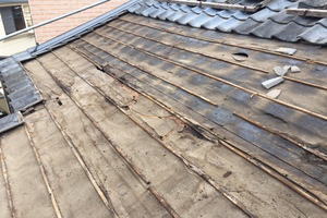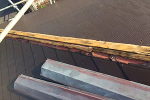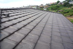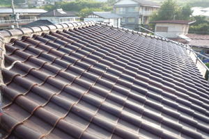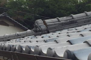 経年劣化による漆喰のはがれ・鬼瓦を引かせている銅線の切れ。 漆喰の剥がれは補修が必要になります。 鬼瓦の銅線が切れている場合、落下の可能性がありますので、早急な対応が必要になります。